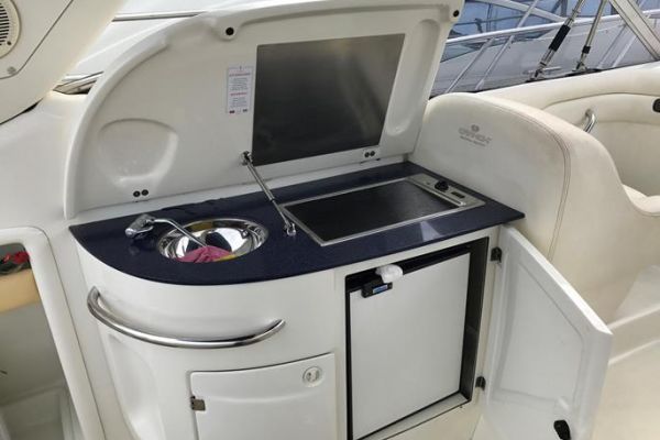 Instrumental de motores completo. Chartplotter Raymarine, VHF, compás, bowthruster, malacate eléctrico con fondeo completo. Generador, Webasto, Garage con apertura eléctrica para bote auxiliar. Incluye bote auxiliar y motor 2 hp.
