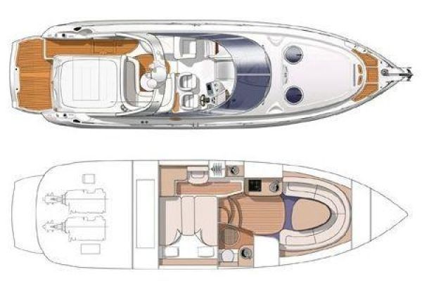 Cockpit: butaca doble para timonel y acompañante. Butaca simple sobre banda de babor. Mesa exterior con sillón en U y Solarium a popa, también Solarium a proa. Ducha exterior de popa. Cocina exterior con grill, segunda heladera y bacha.
