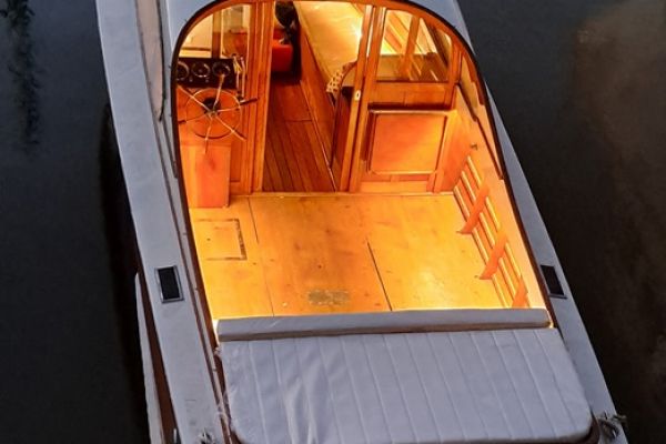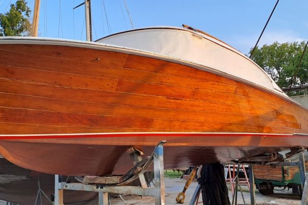 Lancha en restauración completa, se le hicieron barnices y fondo en Febrero 2023.