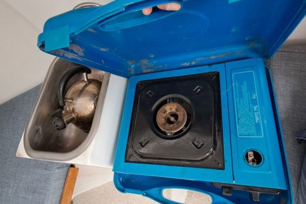 Panel solar, instalación 220. Piloto automático, Ecosonda con GPS que marca posición sin carta. Compas de mamparo. Velas: Mayor y genoa con enrollador, maniobra completa. Mastil, botavara Bohn. Stoppers y maniobra al cockpit. En el interior, baño compartimentado con inodoro manual, colchonetas interiores, anafe y bacha, tanque de agua.