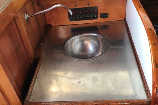 Fondo pintado con minio y cobre. En el interior tiene doble forro de cedro y pintura esmalte.